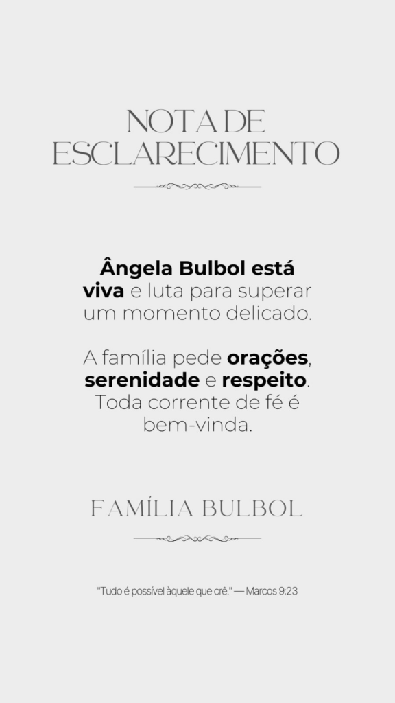 Após o atropelamento, a família emitiu nota oficial negando as afirmações de morte encefálica e confirmando que Angela seguia internada, em um quadro delicado mas não confirmado como fatal naquele momento.