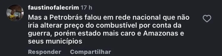 Além das críticas, internautas também cobraram maior fiscalização por parte dos órgãos responsáveis, pedindo investigações para verificar se há irregularidades ou práticas abusivas na formação dos preços do combustível na capital.