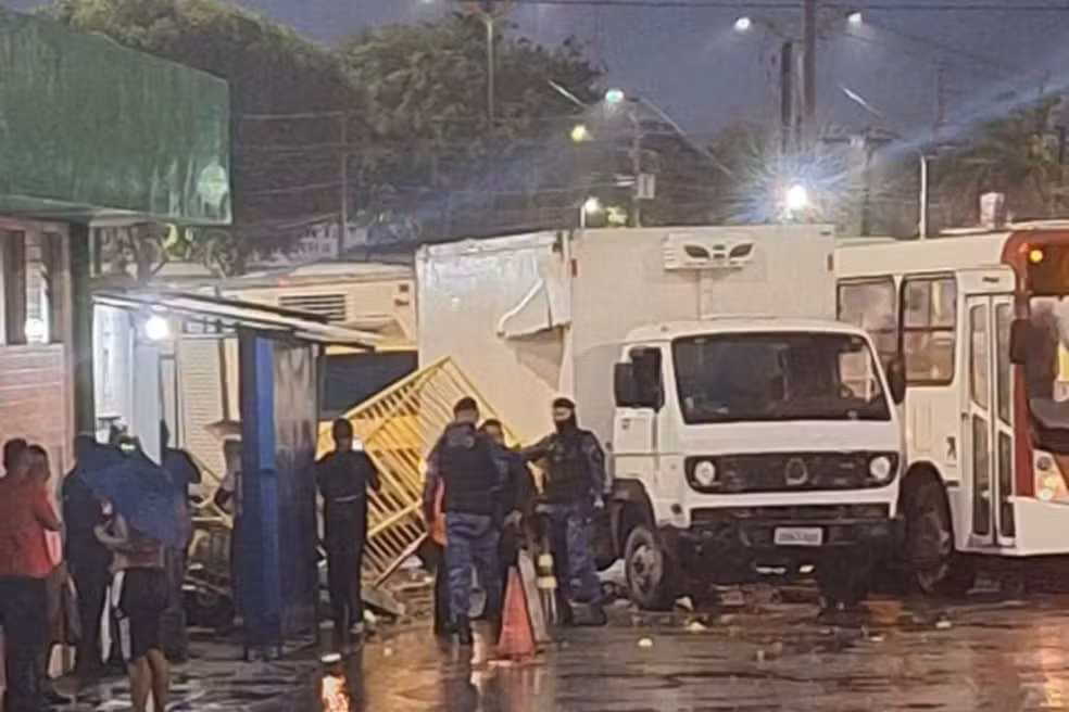 Um caminhão perdeu o controle e invadiu o muro do Terminal 3, localizado no bairro Cidade Nova, Zona Norte de Manaus, na noite de sexta-feira (19). Apesar do susto, não há registro de feridos.
