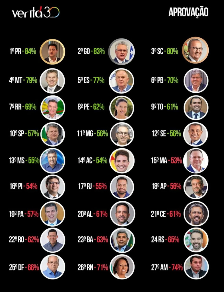 De acordo com o Instituto Veritá, o levantamento mais recente foi realizado nas 27 unidades da Federação, entre os dias 13 de março e 4 de abril, ouvindo 40.500 eleitores em todo o país. Os dados reforçam a tendência de alta rejeição ao ex-governador no cenário nacional.