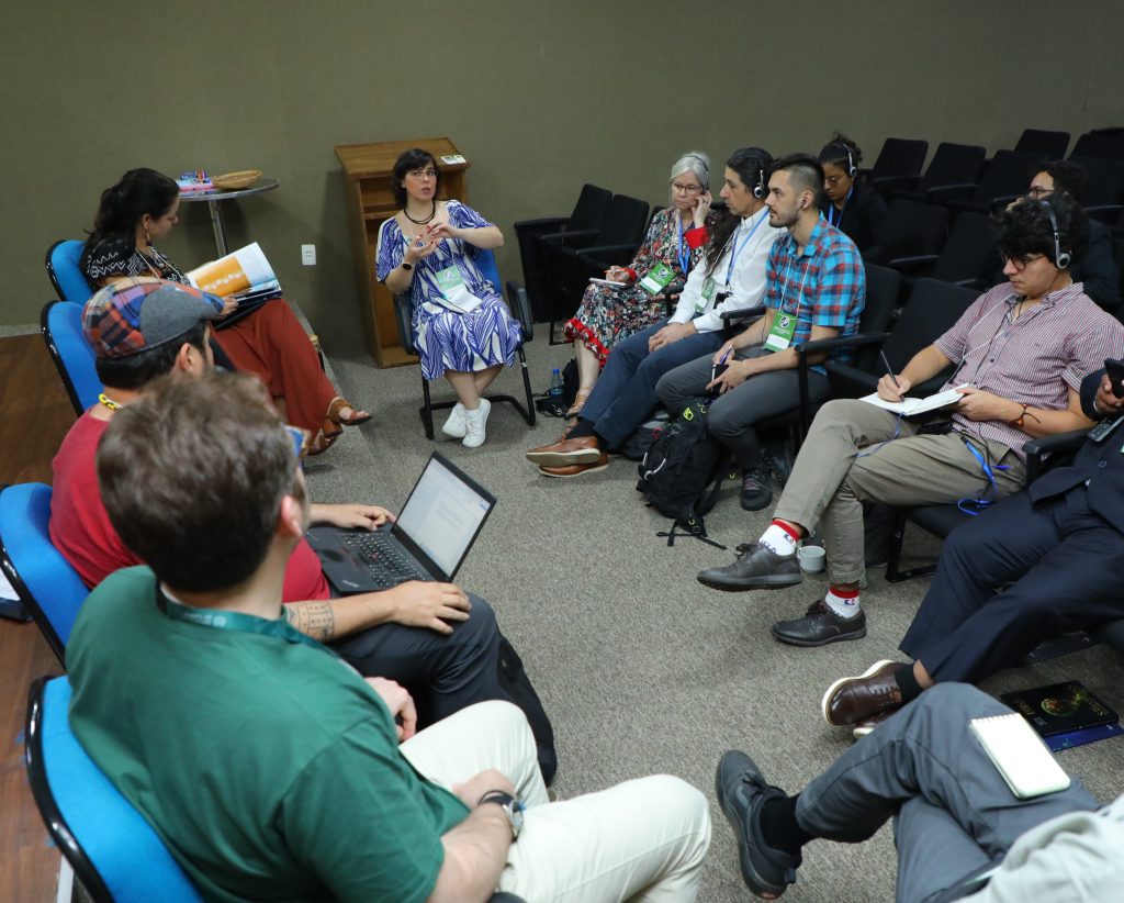 “Compartilhamos um pouco sobre o sistema de conhecimentos indígenas, nós habitamos nesse território há dois mil anos, manejando a terra, a floresta, os rios e mantendo os nossos territórios intactos. Nós queremos agora participar diretamente dessa discussão, porque estamos diante de crises climáticas e isso está afetando todo mundo. Diante desse quadro dramático que a gente está vivendo, nós precisamos conhecer como podemos, juntos, buscar soluções e caminhar juntos, dialogando sempre nas diferenças”, ressaltou João Paulo.