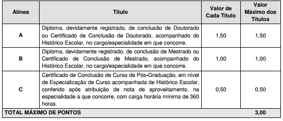 Os classificados também passaram por uma análise de títulos, valendo até 3,00 pontos.