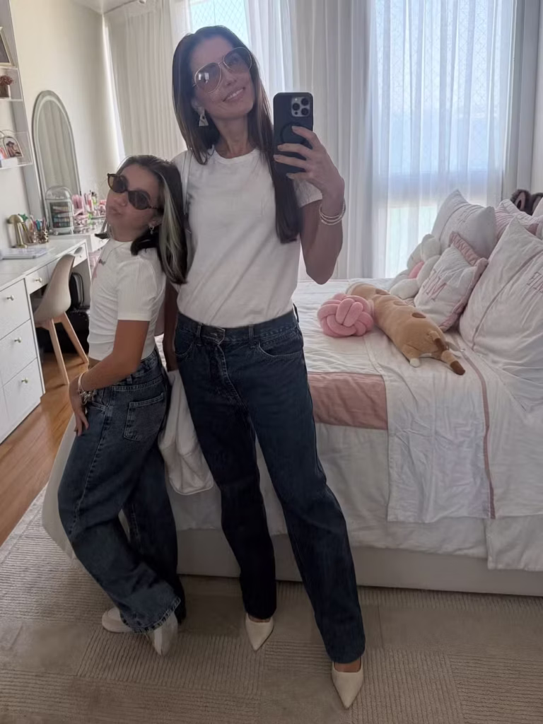 “A Maria Flor é muito menina, criançona… As pessoas veem ela nas fotos e pensam que ela e super mocinha, mas não é. Ela é vaidosa, gosta de maquiagem e pintar o cabelo de colorido, mas ela é meninona. Não vejo ela muito nessa pré-adolescência ainda e tendo que lidar com pressão estética. Ela se curte muito. Lembo que desde pequena, quando ela se arrumava, eu perguntava, ‘você está se amando assim?’, e ela respondia, ‘estou me amando’. E eu falava, ‘que bom, você é linda’. E ela: ‘eu sei. Sou mesmo’ (risos). Ela é muito confiante, mas sempre abro um espaço para conversa e falo que ela pode ser quem ela quiser. Ela não tem que acatar ao que é externo. Ela tem direto de ser quem ela quiser ser tanto no âmbito estético, quanto no emocional.”