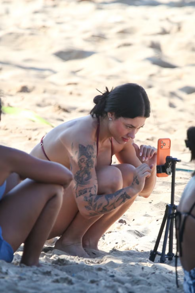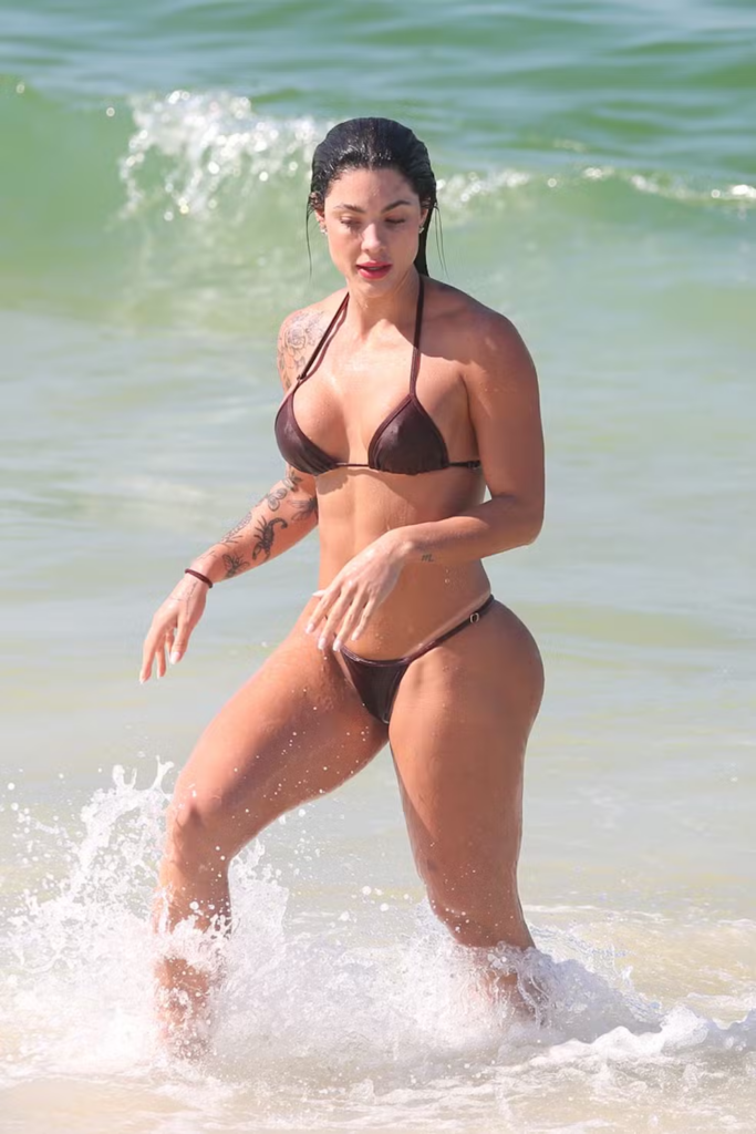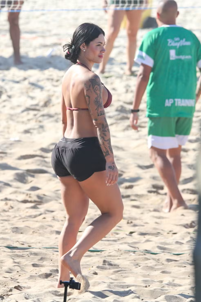 Rio de Janeiro – A influenciadora Rayane Figliuzzi, de 28 anos, atual namorada do cantor Belo, foi clicada na manhã deste sábado (25) praticando futevôlei em uma praia do Rio de Janeiro. Após a atividade, ela aproveitou para dar um mergulho na Barra da Tijuca, vestindo um shorts de academia e um biquíni bordô. A aparição acontece em meio a uma troca de acusações públicas com o ex-marido, Alexandre Junior Navarro.