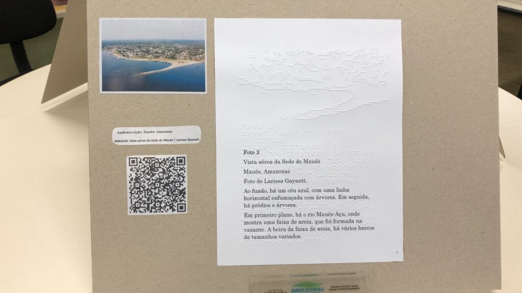 A audiodescrição das obras foi realizada pela profissional Sandra Amazonas, que também gravou as descrições em QR Codes disponíveis ao lado de cada peça, permitindo que o público com deficiência visual tenha acesso completo à narrativa visual e cultural das imagens.