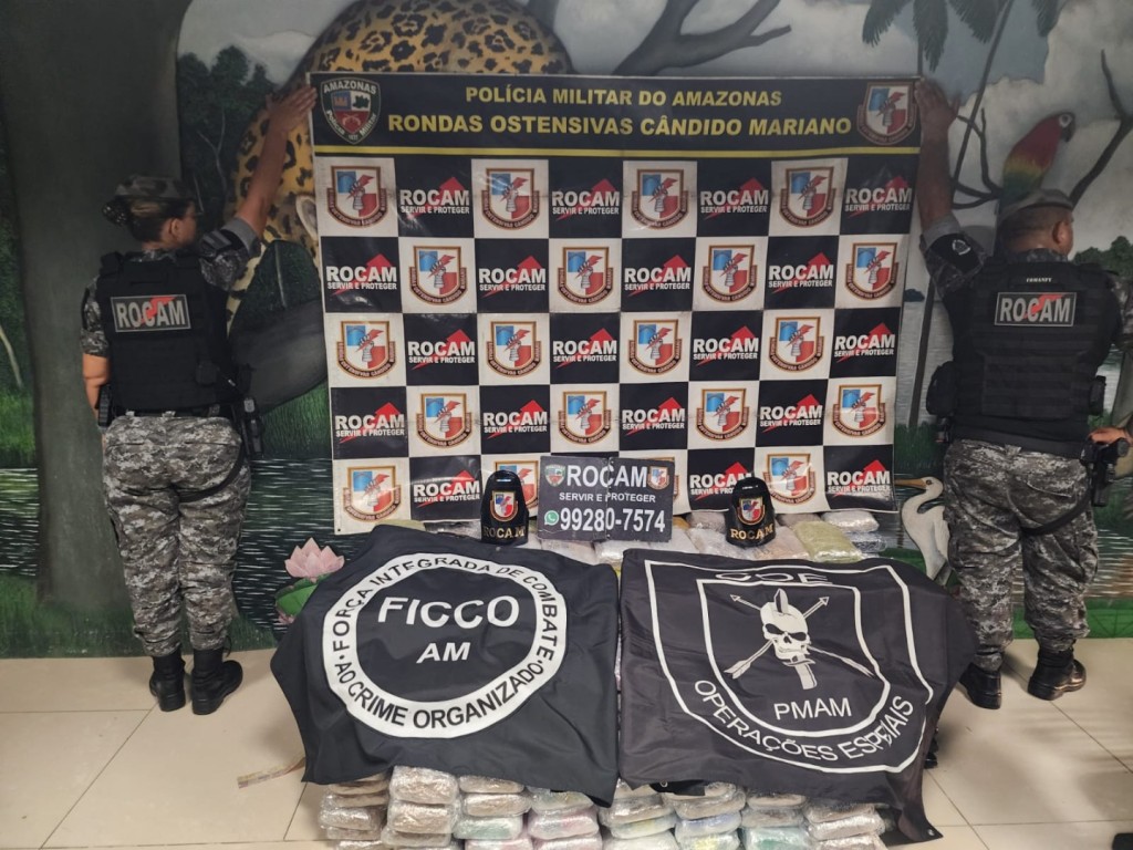 A Força Integrada de Combate ao Crime Organizado no Amazonas (FICCO/AM), neste ato representado pela Polícia Federal, o Comando de Operações Especiais (COE), o Comando de Policiamento Especializado (CPE) e as Rondas Ostensivas Cândido Mariano (Rocam), da Polícia Militar do Amazonas (PMAM), prendeu em flagrante, nesta sexta-feira (17/10), dois indivíduos por envolvimento no transporte e armazenamento de 500 kg de entorpecentes na capital amazonense.
