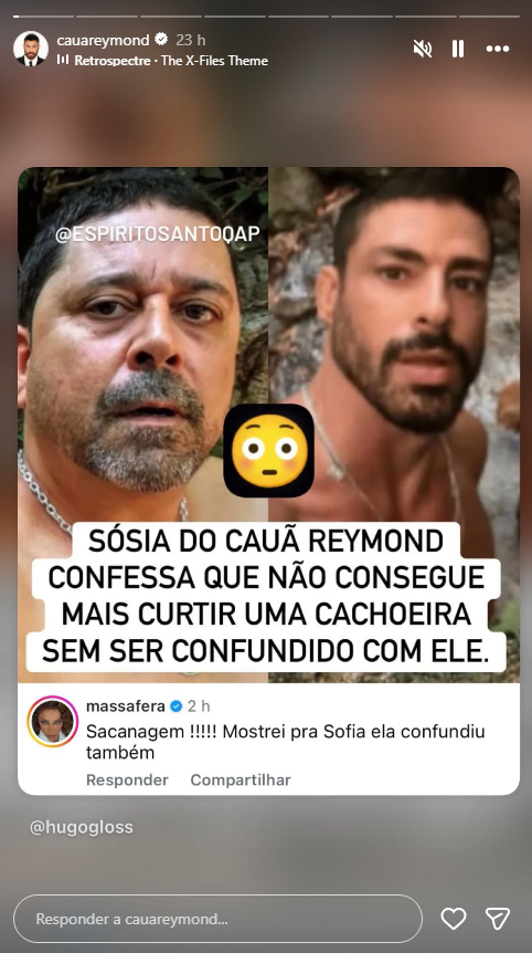 No momento registrado em vídeo, o homem se aproxima da atriz e comenta que muitas pessoas dizem que ele é muito parecido com Cauã Reymond. Ao ouvir a afirmação, Grazi reage com surpresa e bom humor, brincando com a situação.