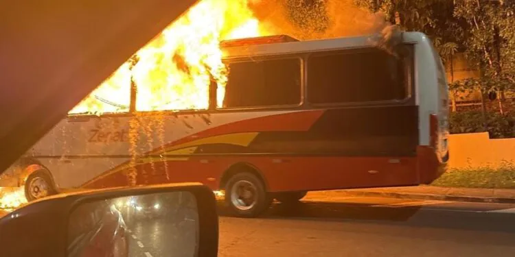 Um micro-ônibus de rota pegou fogo na madrugada desta segunda-feira, 27/10, enquanto trafegava pela rua Júlio César da Costa, nas proximidades da avenida Rodrigo Otávio, bairro Petrópolis, zona Sul de Manaus.