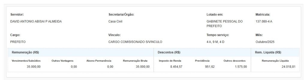 A Prefeitura de Manaus é acusada de descumprir decisão judicial de agosto deste ano, que suspendeu a lei aprovada no fim de 2024 que aumentou os salários do prefeito, vice-prefeito, secretários, subsecretários e vereadores para o período de 2025 a 2028.