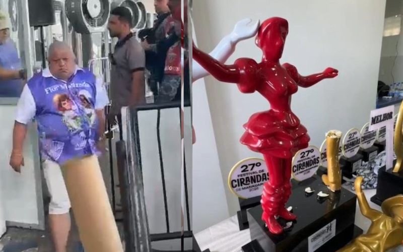 O presidente da Ciranda Flor Matizada e secretário de Cultura de Manacapuru, Alexandre Queiroz, quebrou o troféu da campeã Ciranda Tradicional durante a apuração do 27º Festival de Cirandas de Manacapuru, realizada nesta segunda-feira (1º), no Parque do Ingá.