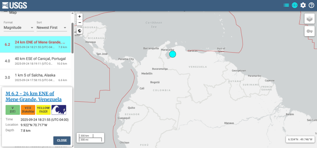 Um terremoto de magnitude 6,2 sacudiu boa parte do oeste da Venezuela, por volta das 18h20, desta quarta-feira (24/09). Não foram reportados de imediato danos materiais ou vítimas. Nas redes sociais, moradores de Manaus disseram ter sentido o tremor em alguns prédios de determinadas áreas da capital.